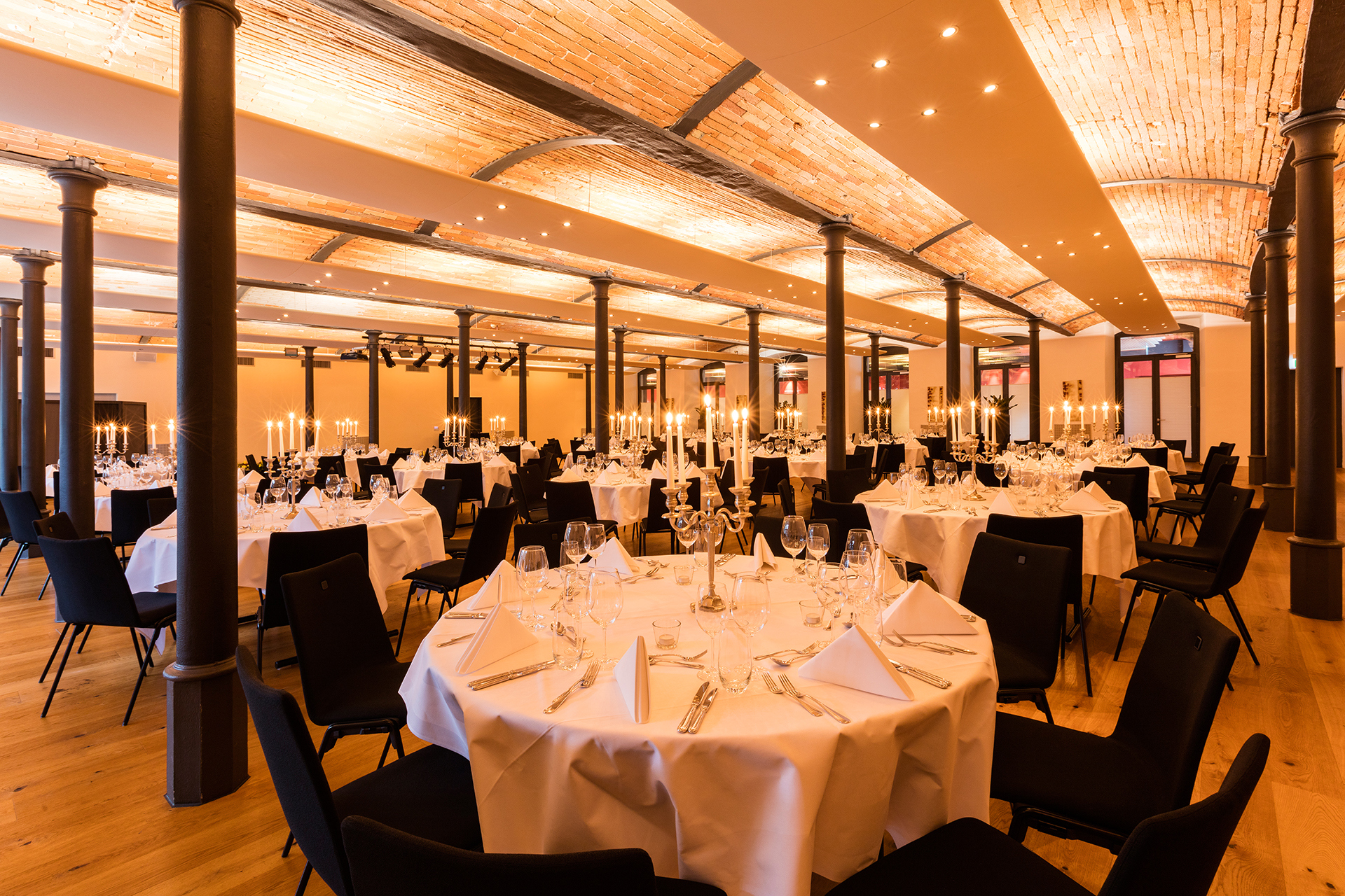 The 28 meeting and event rooms are suitable for just about everything thanks to integrated technical equipment and natural daylight. Your meeting, workshop, conference, birthday party or wedding will be hosted successfully in these memorable premises. The former yarn-spinning factory has experienced a lot of unforgettable private and corporate events thanks to the “Revival” in 2009.