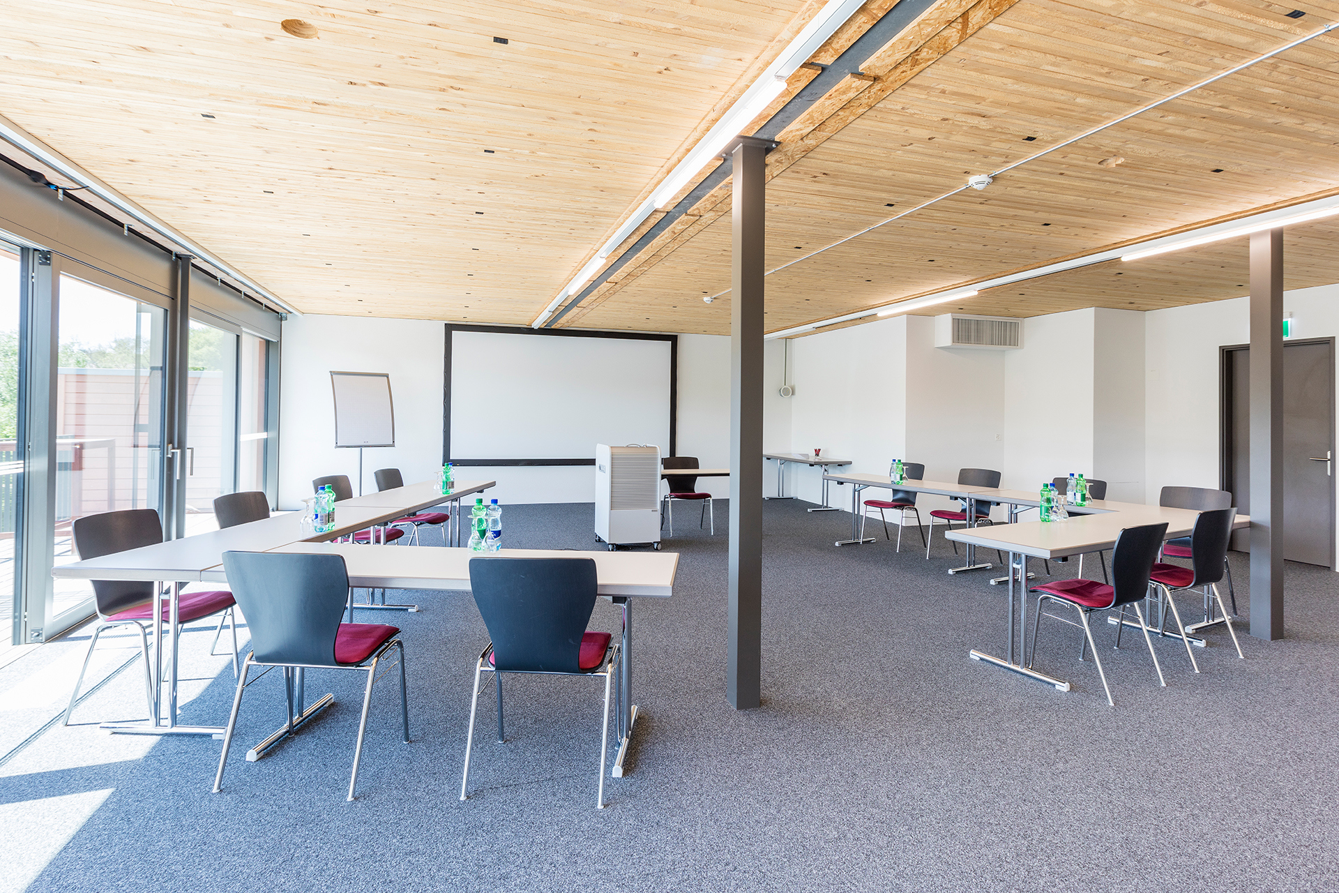 Lodge 1 with 145m² is our new meeting room located on the second floor in the newly built riverlodge. Besides the technical equipment, the room features a balcony and river view.