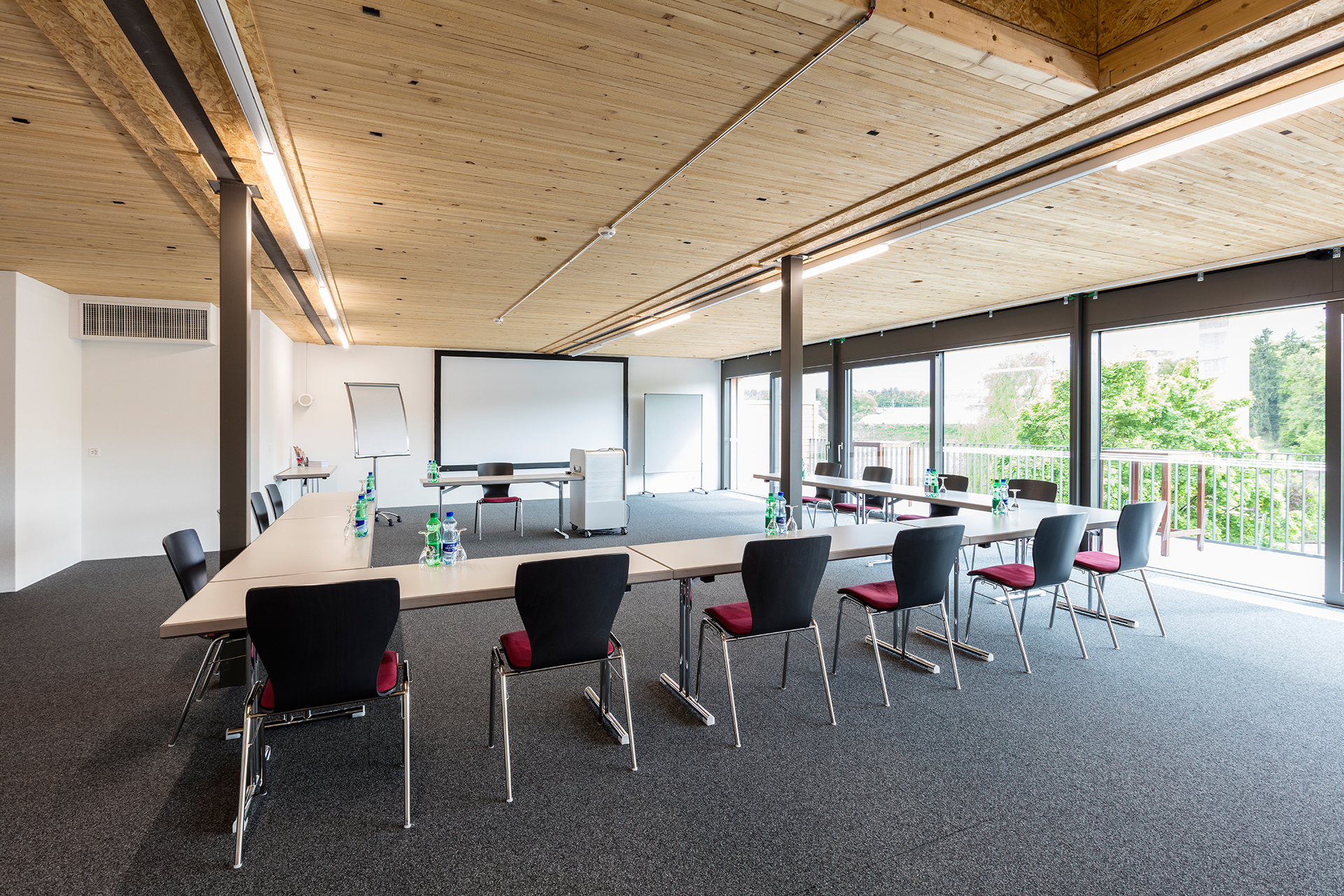Lodge 2 is identical to Lodge 1. With 145m², it is one of the new meeting rooms located on the second floor in the newly built riverlodge. Besides the technical equipment, the room features a balcony and river view.
